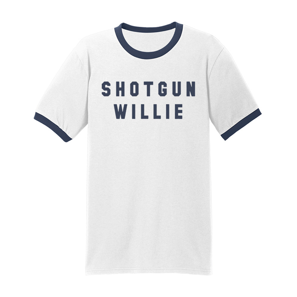 Willie has been described as a man of wisdom and a peacemaker, but he wasn't always the gentle soul that many now know him as. Nicknamed 'Shotgun Willie' for the shootout that happened when he heard his daughter Lana was being physically assaulted by her husband Steve. “I ran for my truck and drove to the place where Steve and Lana lived and slapped Steve around,” Willie recalls. “He really pissed me off. I told him if he ever laid a hand on Lana again, I would come back and drown his ass. No sooner did I get back to Ridgetop than here came Steve in his car, shooting at the house with a .22 rifle. I was standing in the door of the barn and a bullet tore up the wood two feet from my head. I grabbed an M-1 rifle and shot at Steve’s car. Steve made one pass and took off.”Willie then returned to Steve and Lana's to find Steve had left and kidnapped their young son Nelson Ray. Lana told Willie that Steve was looking to 'get rid of him.' So Willie drove back to Ridgetop and waited.“Thinking Steve would come to Ridgetop to pick me off about dusk, I hid in the truck so he couldn’t tell if I was home. We laid a trap for him. I had my M-1 and a shotgun. He drove by the house, and I ran out the garage door. Steve saw me and took off. That’s when I shot his car and shot out his tire. Steve called the cops on me. Instead of explaining the whole damn mess, the beatings and the semi-kidnapping and shooting and all, I told the officers he must have run over the bullet. The police didn’t want to get involved in hillbilly family fights. They wrote down what I told them on their report and took off.”Willie may have softened over time, but the story continues to live on. Now you too can own the infamous 'Shotgun Willie' tee for yourself! It resembles the vintage design of the tee worn by Willie ! Get yours today and help this story continue to live on!